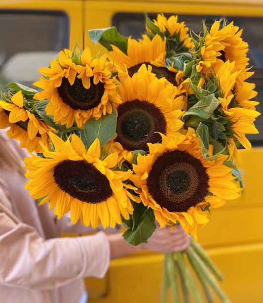 «Sunflower paradise» sunflower, roses, delphinium, chamomile
