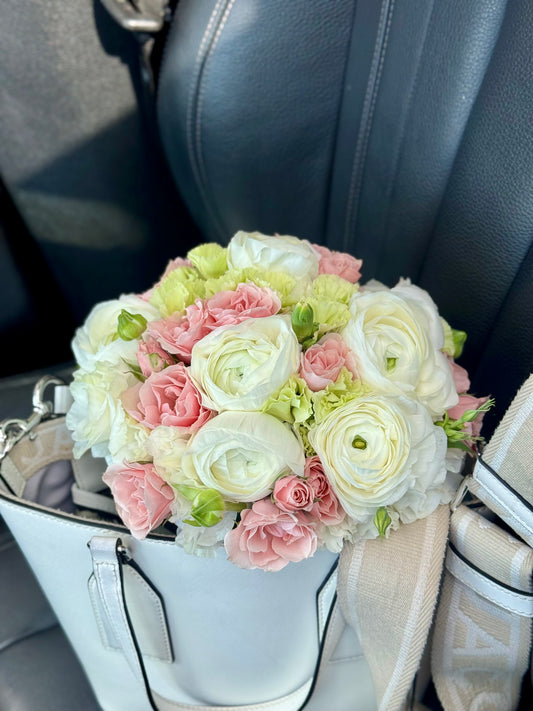 «Candy love» wedding bouquet, ranunculus, carnation, roses, lizianthus
